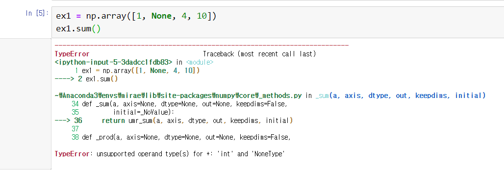 None은 파이썬 객체이고, Numpy연산이 불가능하다.