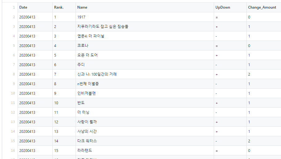 wr.writerow([str(date), str(i + 1), movieName[i], movieUpdown[i], movieNum[i]])