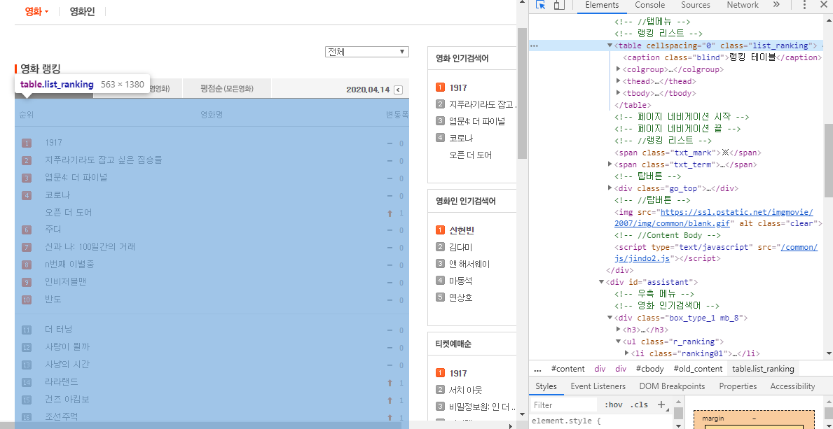 전체 데이터에서 table 태그가 달려있고, class이름이 'list_ranking'인 곳을 가져옵시다.
