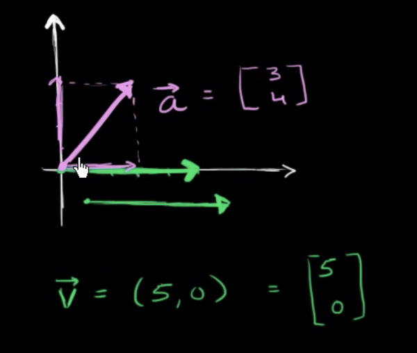 수평으로 +3만큼 움직이고 수직으로 +4만큼 움직인 벡터가 있다면 위와 같은 벡터 a 가 된다.