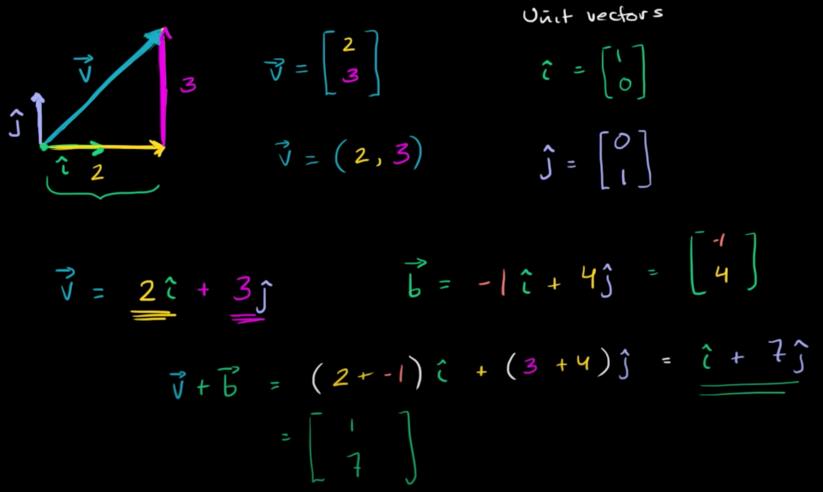 벡터 v는 (2, 3)이기 때문에, 2i^ + 3j^으로 표현될 수 있다.