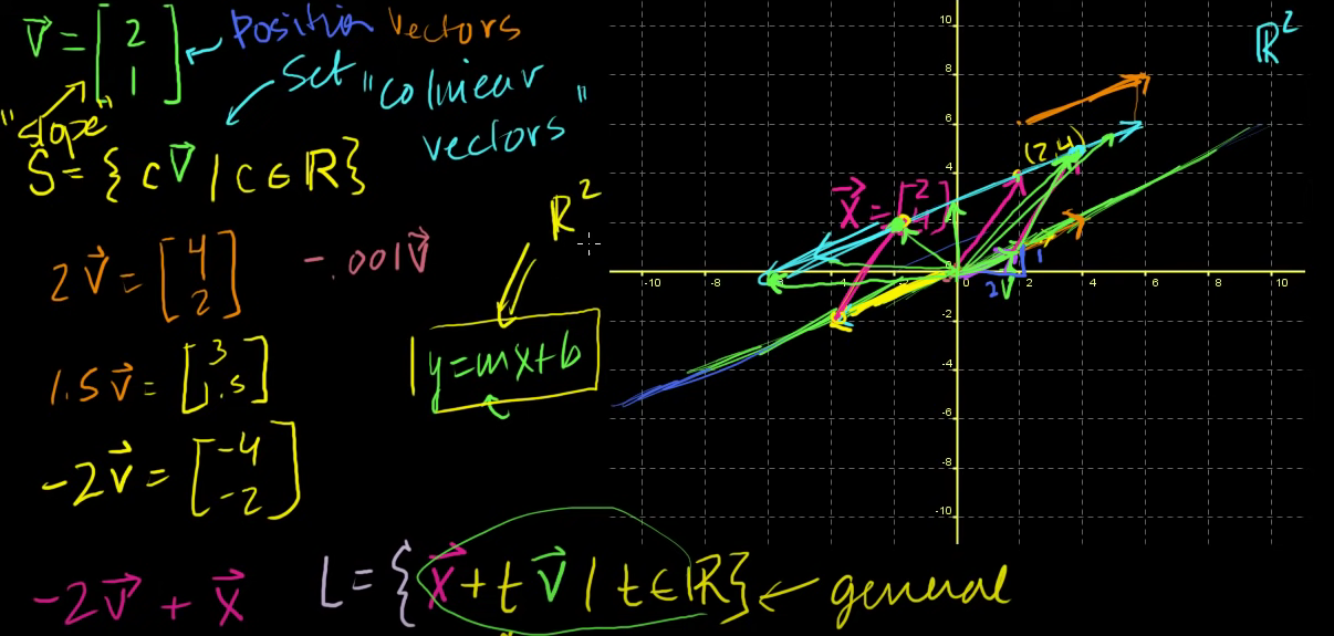 왜냐하면, c * V인 벡터를 위치벡터로 본다면, S는 원점을 지나며 1/2의 기울기를 갖는 직선상에 존재하는 위치벡터로 표현할 수 있기 때문이다.
