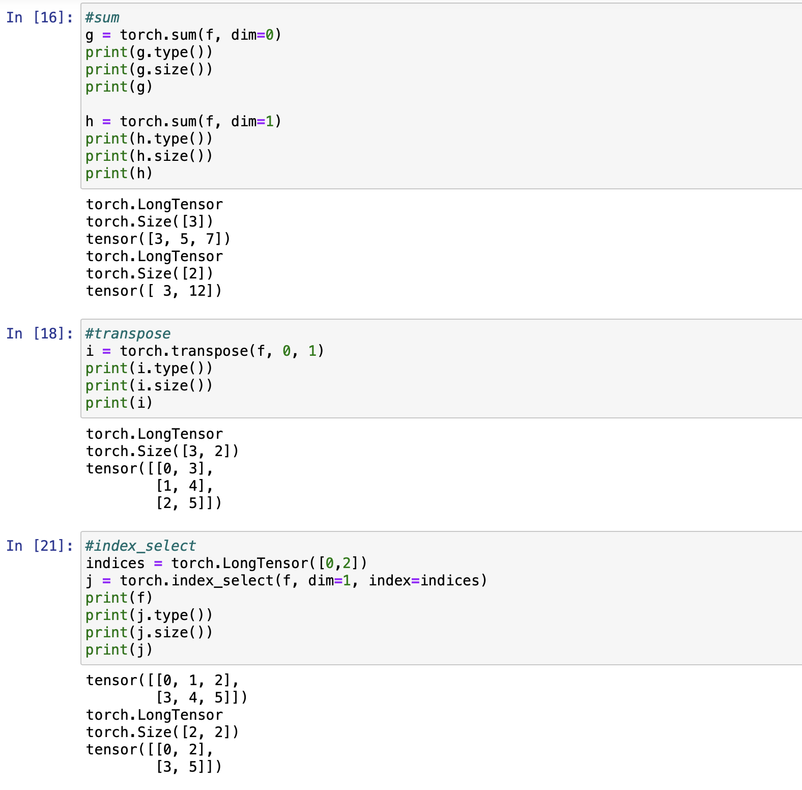 - index_select는 연속적이지 않은 데이터를 슬라이싱할 때 유용함. (2번째 차원에서 0번과 2번을 뽑아냄. f[:, [0,2]]와 동일)