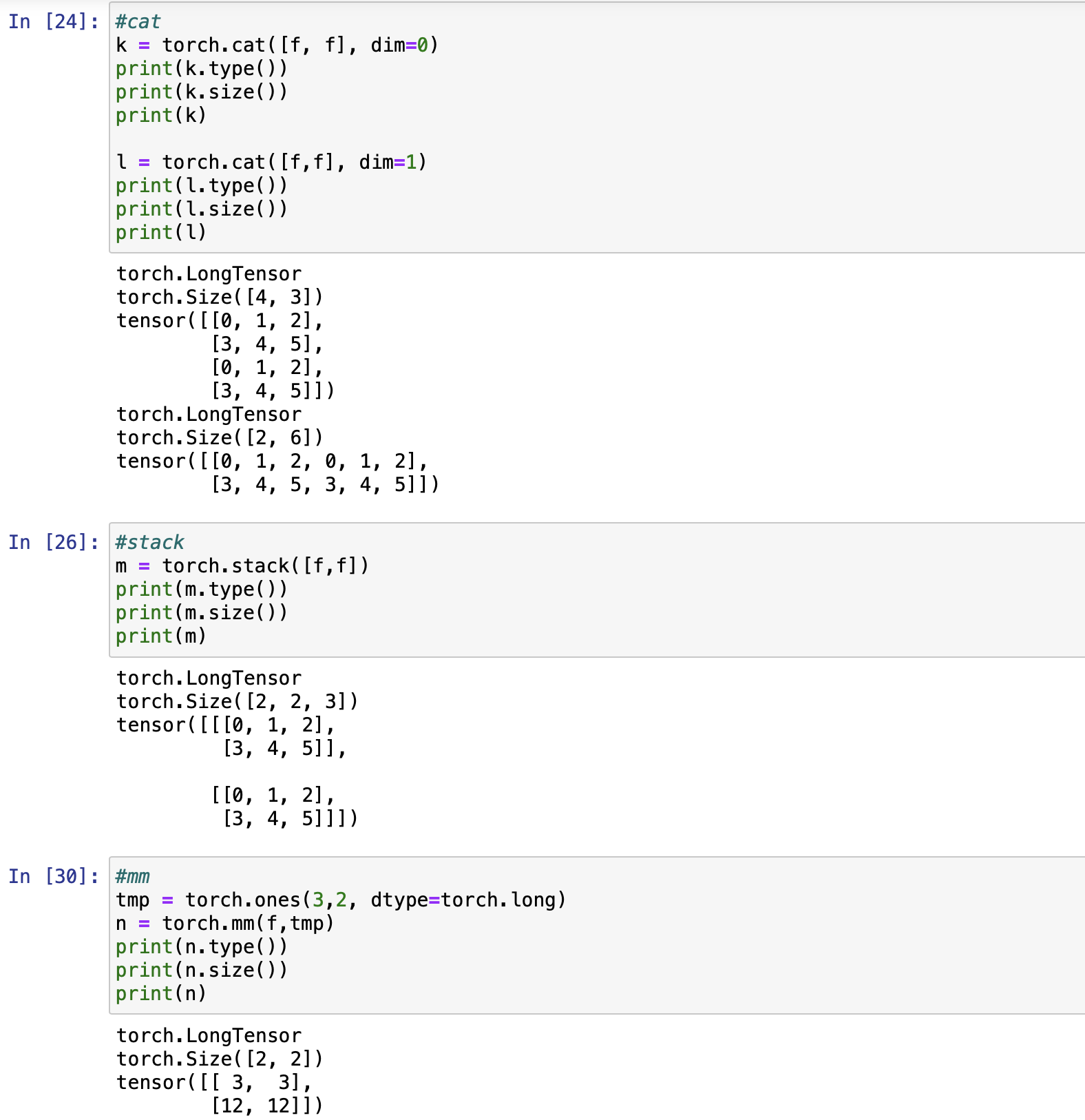 - cat은 선택된 차원방향으로 텐서를 붙여줌.
